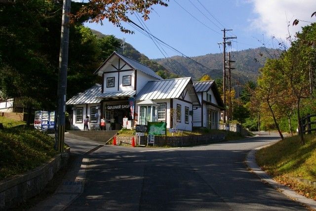 ガリバー旅行村の入り口で、登山の旨伝えて、駐車料金を支払って入場します。こんな売店もあります。