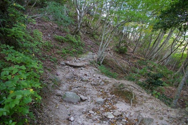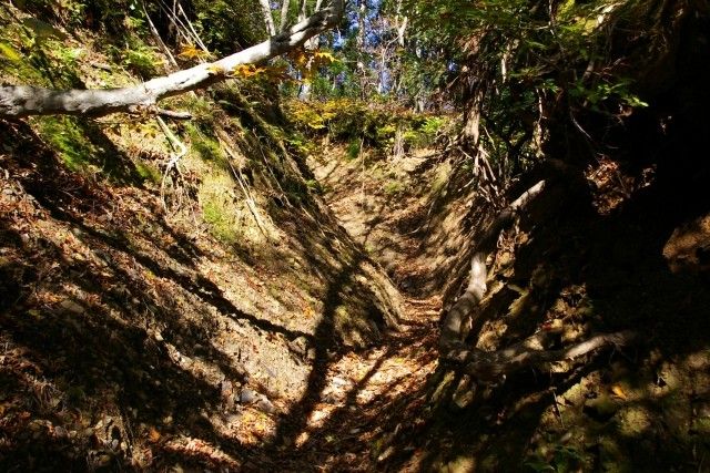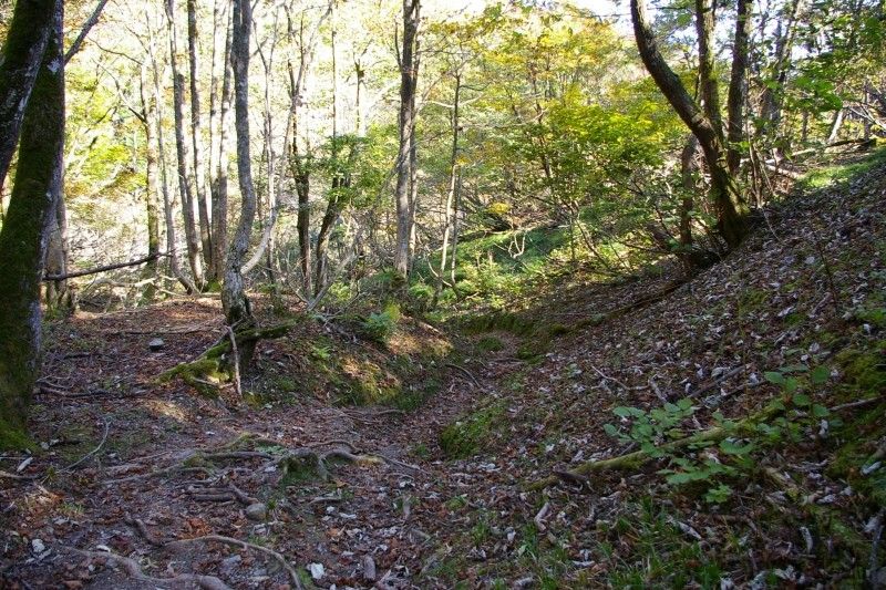 イブルキノコバからしばらく谷沿いに登りますが、やがて右の山腹に取り付きます。そのあたりの溝道。