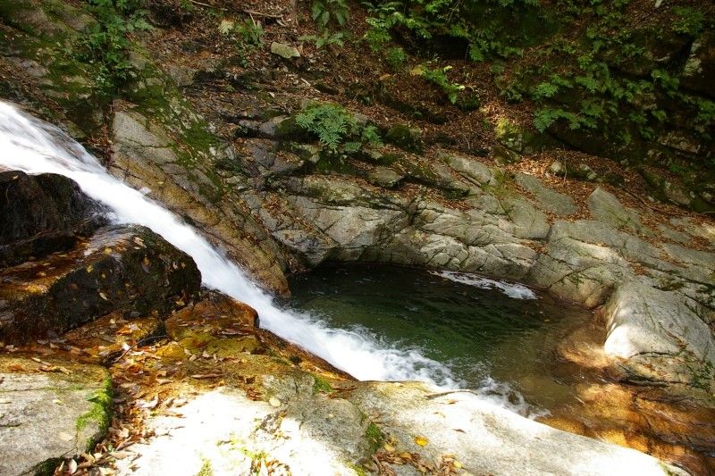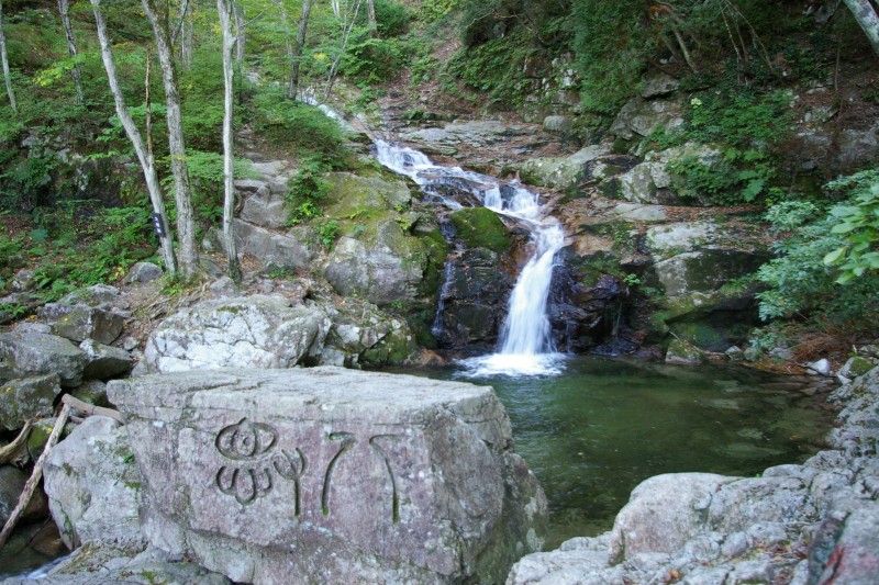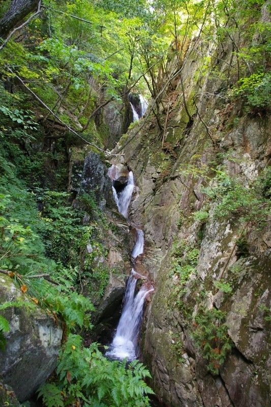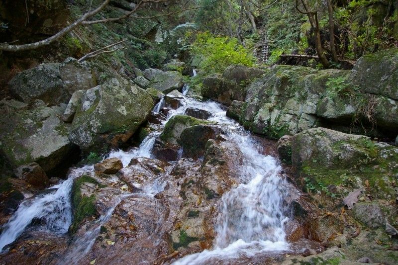 貴船の滝を過ぎて、しばらく林の中をのんびり歩くと、先に七遍返しの滝が見えてきます。最後の難所です。
