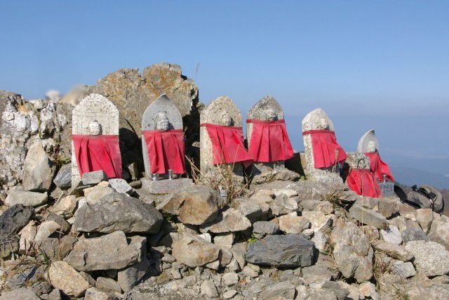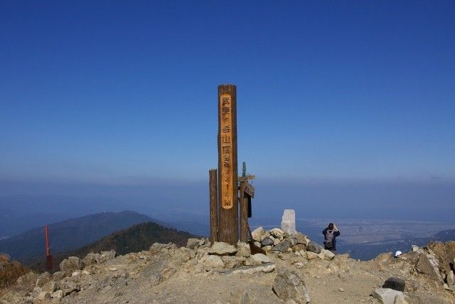 武奈ヶ岳は、日本200名山というのに入っているそうです。右の白い石が三角点の標石です。