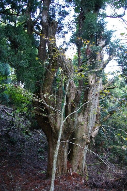 多雪地帯に自生するスギの変種だそうです。まっすぐ伸びずに、幹の下部から大枝を出すことが多いのが特徴です。