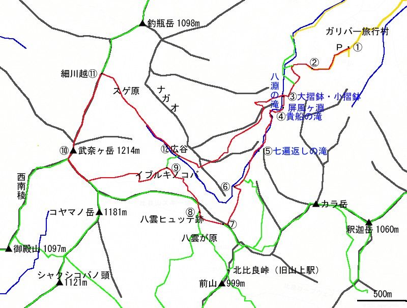 武奈ヶ岳〜ガリバー旅行村から八淵の滝経由のルート Mt. Bunagatake