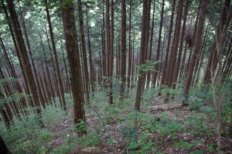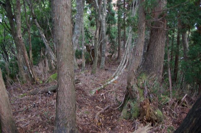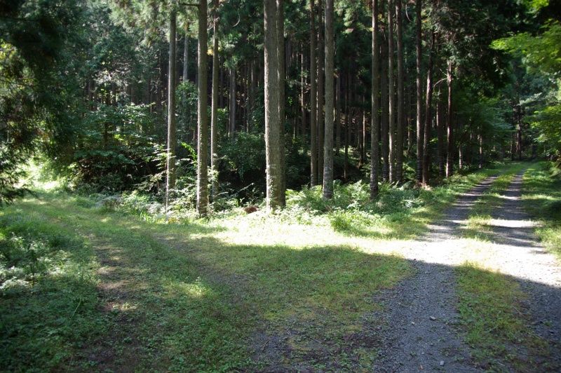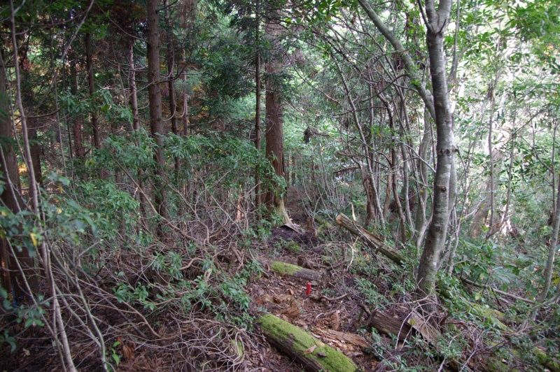 左が植林地、右が雑木林といった部分が多くなってきます。あいかわらず赤い杭は健在です。