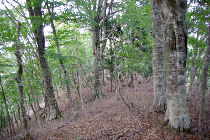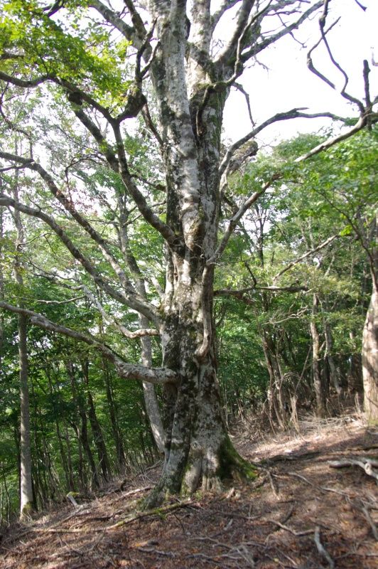 稜線一帯はブナの森となります。素晴らしい大木も、何本かあります。