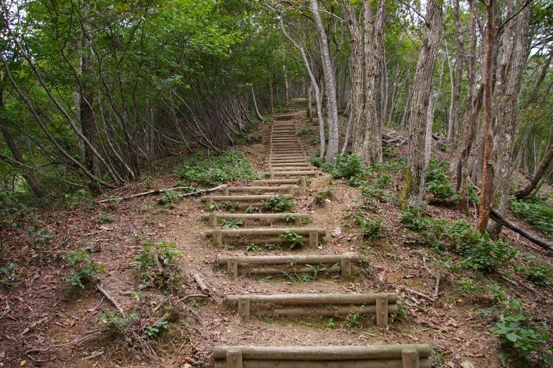 非常によく整備された尾根道です。傾斜がきついところは、階段があります。