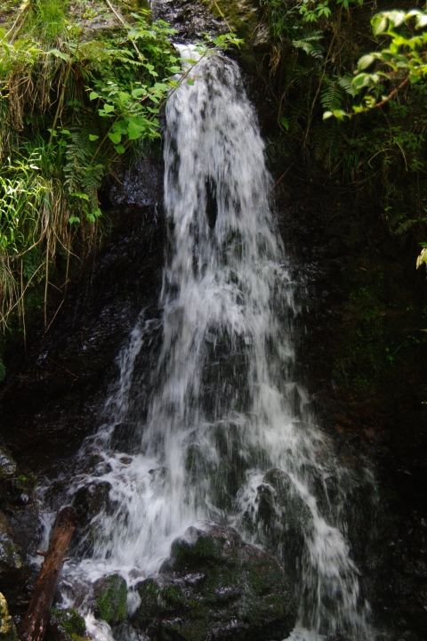 ほぼ下りきったあたりで右岸に渡り、滝が見えます。
