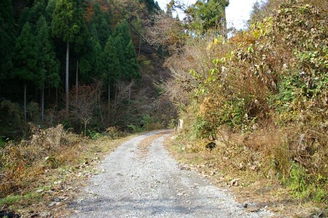 足尾谷(あしびだに)に沿う林道です。少し上にある古い発電所まで通じています。