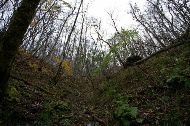 栃の木の少し先でツボクリ谷と別れ、ここで左折して小さな谷沿いに登ります。