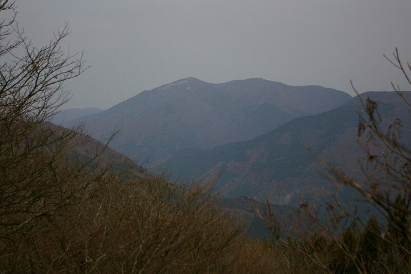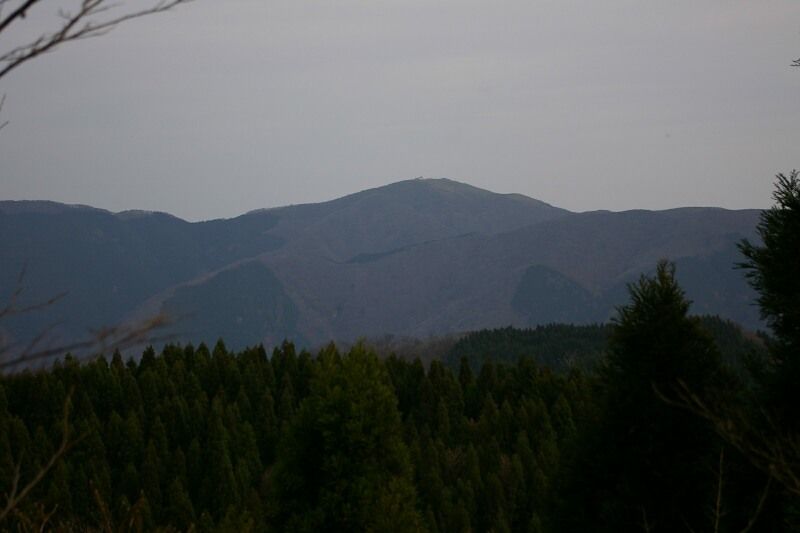 山頂からほぼ真東、木々の合間に蓬莱山が巨体を見せていました。