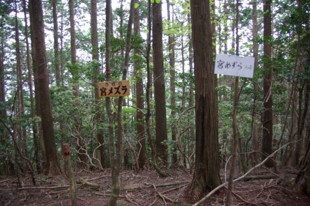 山行記録:日時−2009年5月4日、天候−曇り。9:57 還来神社@脇に駐車し、参拝後出発、10:10 谷から離れるポイントC、10:53 宮メズラ・山頂E、11:08