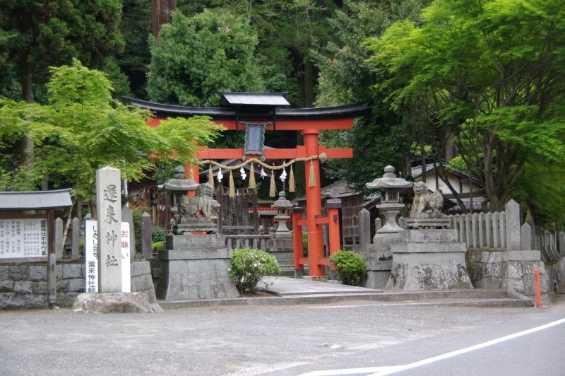 還来神社は、桓武天皇に仕えた藤原旅子の霊をまつる神社で、戦乱や旅の際に無事故郷に還れるようにと祈願する