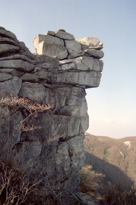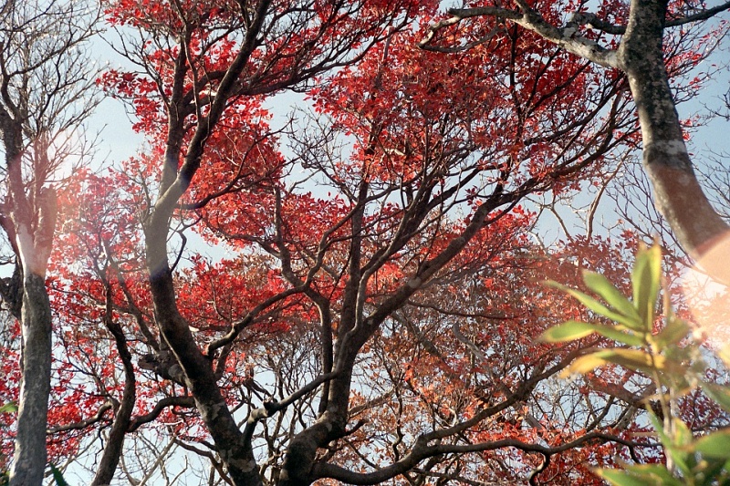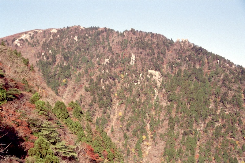 石門の上に登れば、山頂方向、ツツジ類の紅葉が少し残っていました。