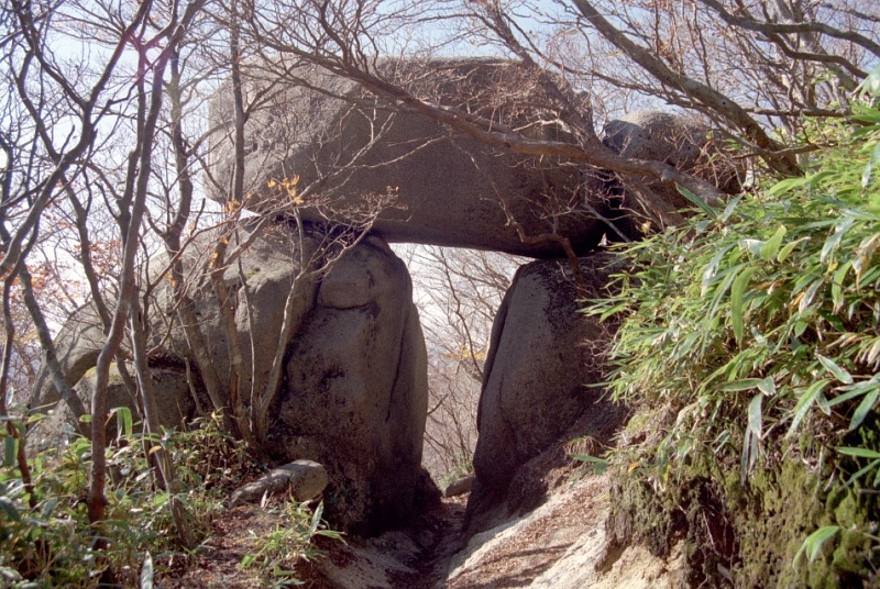 国見岳山頂の少し手前を左に向かうとすぐにこの石門です。いったいどうやってできたのでしょう?