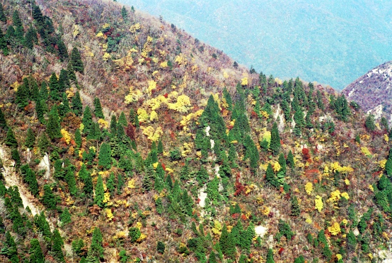 鈴鹿山脈の中核に位置する御在所岳と国見岳。いつもは滋賀県側からのため、武平峠から登っていましたが、初めて伊勢側・湯の山温泉から中道を経て登りました。やはりこの山の醍醐味は、このあたりを登らないことには。紅葉シーズンのこと、山上の喧騒はあきらめて早い目に国見岳に向かいました。ここは再び静かな(といっても登山者はけっこう多かったですが・・・)山歩きが楽しめました。その後国見尾根を下り、岳不動、藤内小屋を経て湯の山温泉に下りました。