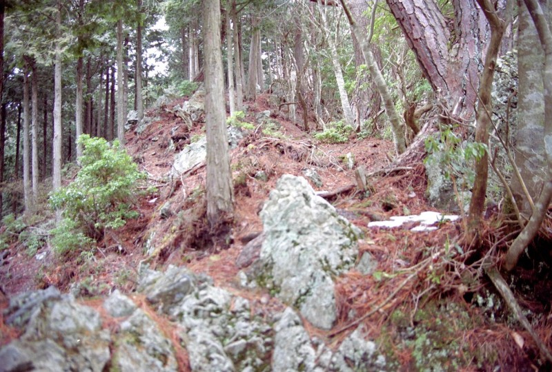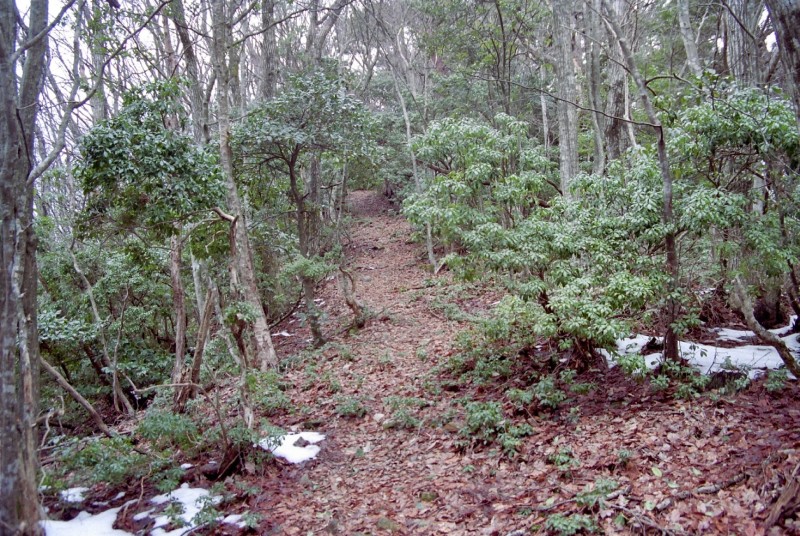 ダム堰堤北からの取り付き直後の北向きの尾根。なかなかの急登で息が上がります。
