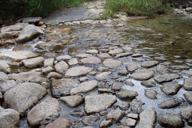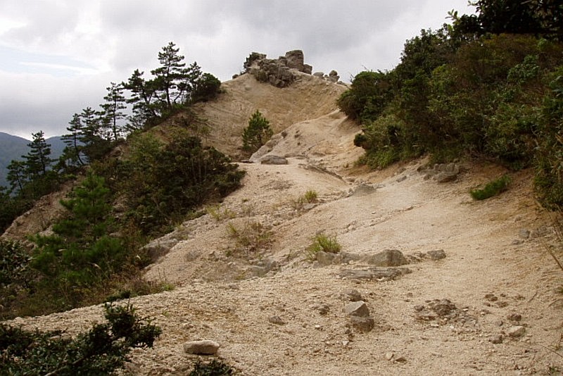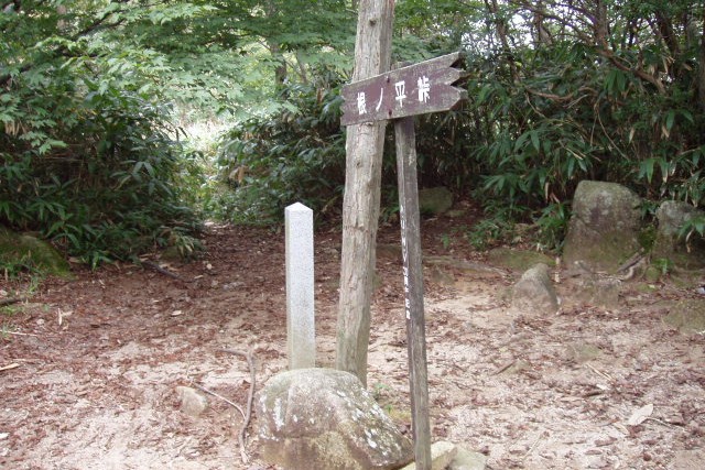 山行記録:日時−2005年9月17日、天候−くもり一時小雨。朝から小雨がぱらつく日、少し明るくなってきたので、鈴鹿峠を越えてはるばる朝明までやってきました。でも着いたのはお昼過ぎ。急ぎ足で周回ルートを行くことに・・・・まず、朝明渓谷の大駐車場(地図P)に駐車し、12:55