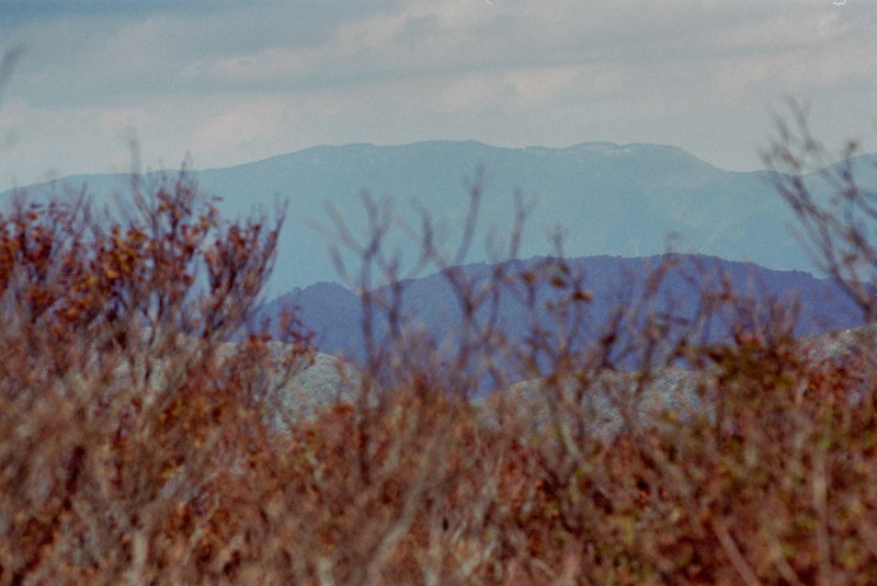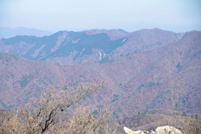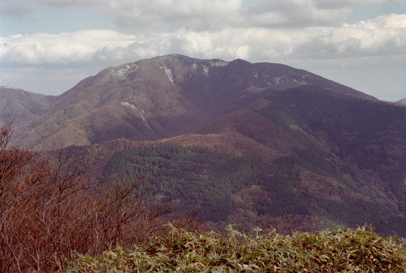 鈴鹿峠から再び上がって高畑山。さらに右には溝干山、三ツ頭、那須ヶ原山と続きます。200mm望遠。