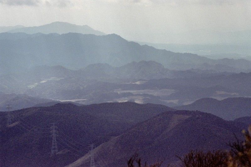 さらに右には油日岳。ここで鈴鹿山脈は尽き果てます。後方には伊賀の霊山766m。200mm望遠。