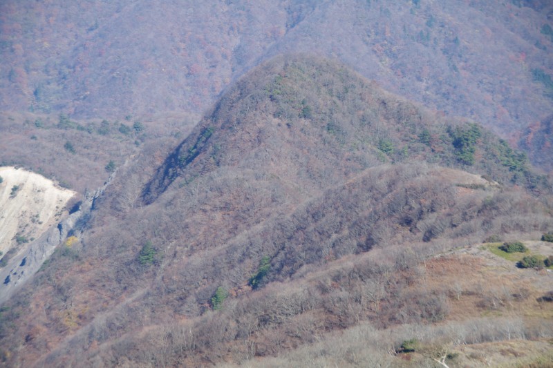 なんといっても一番目を引く存在です。11月も下旬になると、緑は杉植林のみで、それ以外の山肌はベルベットのように柔らかです。