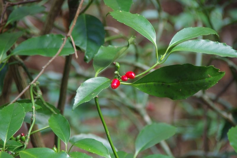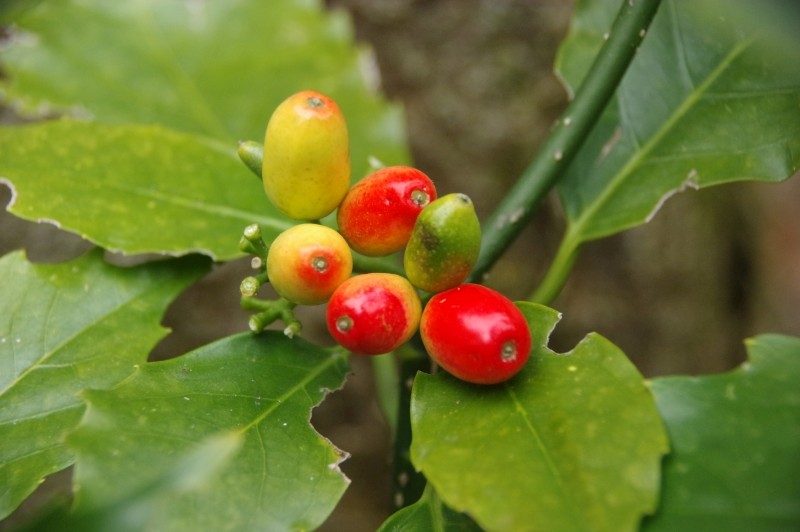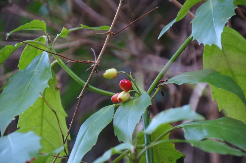 山中にも自生していて、3以降は自生していたアオキの実です。自生したものも、良い色の実を付けます。