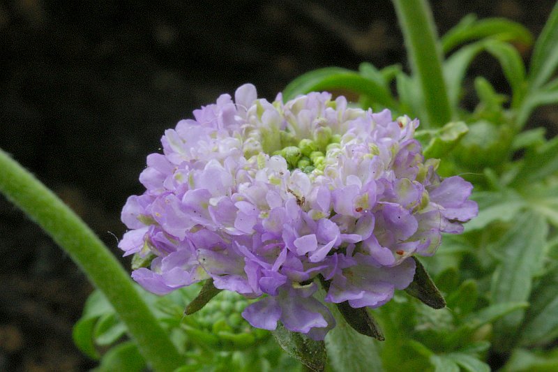 マツムシソウは野原に生える秋の花ですが、ある日近所の花屋さんに苗が入っていました。