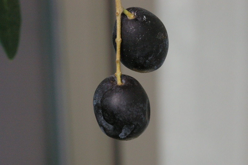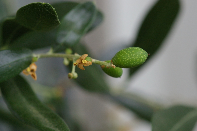 1-2はオリーブの若い果実です。初夏に実り始めます。3-5は紫に色づいた果実。花は