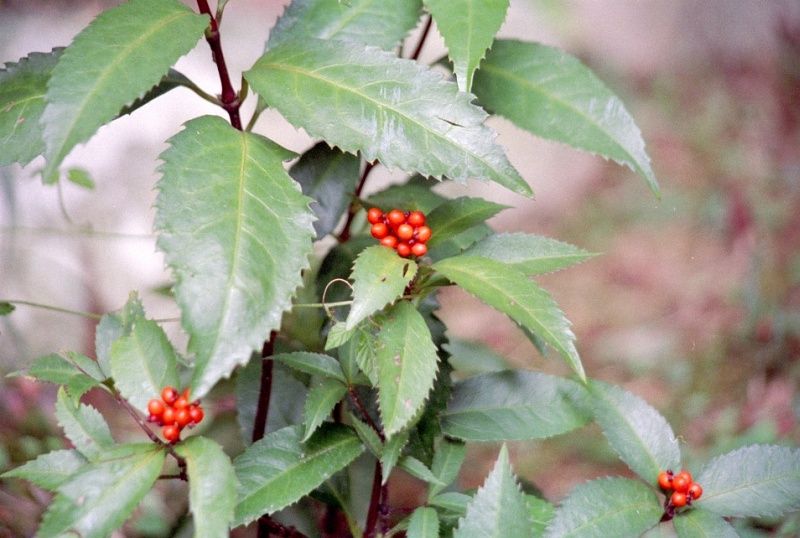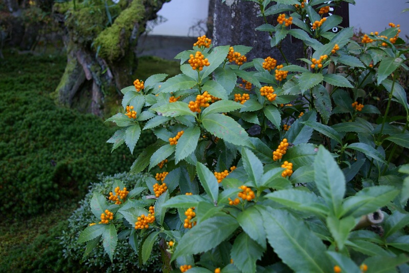 (万両)とともに初冬の庭で色づくきれいな実です。基本は赤い実ですが、2のような黄色の実もあります。