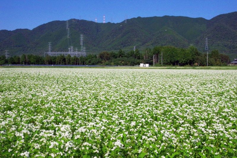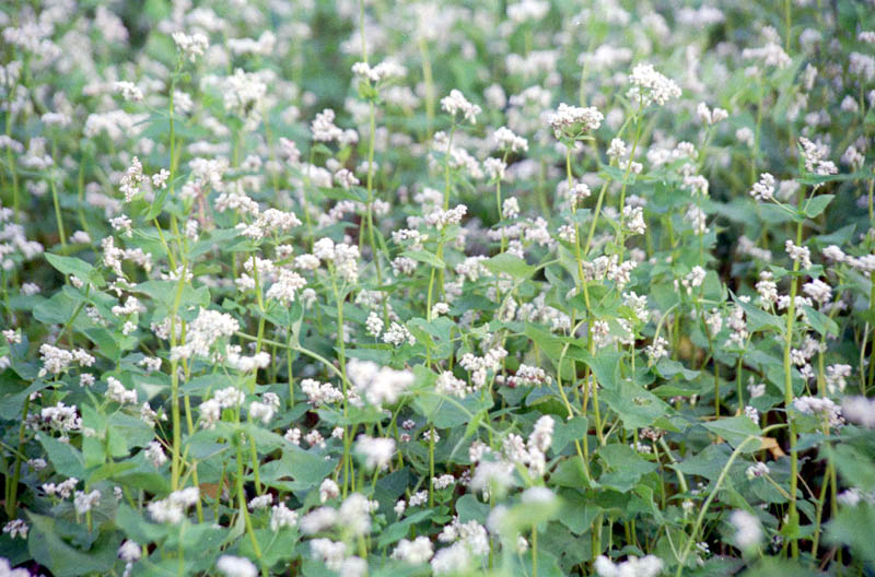 でも、夏に蒔いて初秋に花が咲く秋蕎麦がメインです。4-5は、蕎麦どころ、伊吹山の麓のソバの花です。