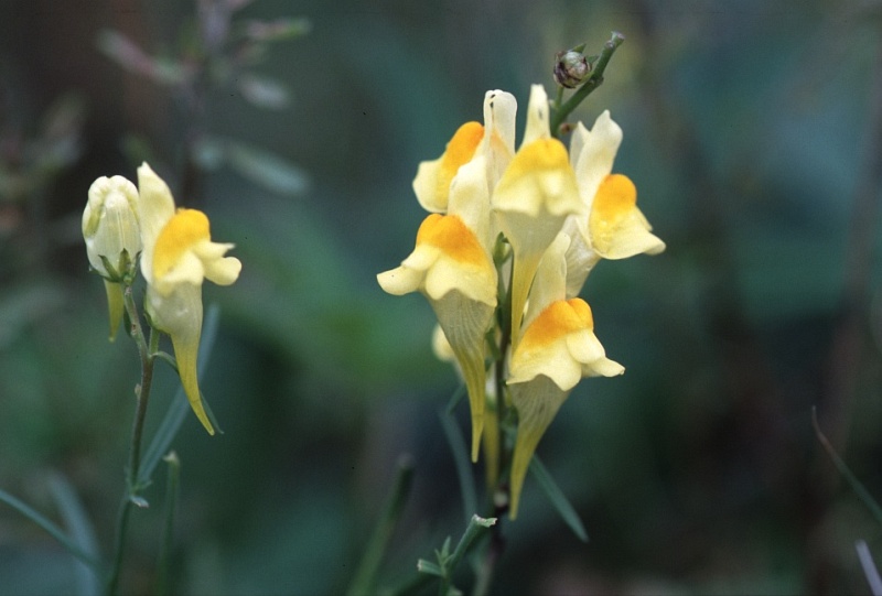 なんと言っても、この形がおもしろい花です。顎のように下に突き出した距、前方や上方に手のように飛び出した
