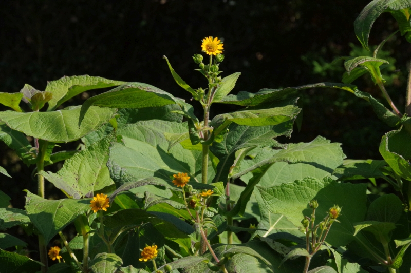ようです。秋から冬にかけて植物体の大きさからするとたいへん小さなヒマワリのような黄色い花が咲きます。