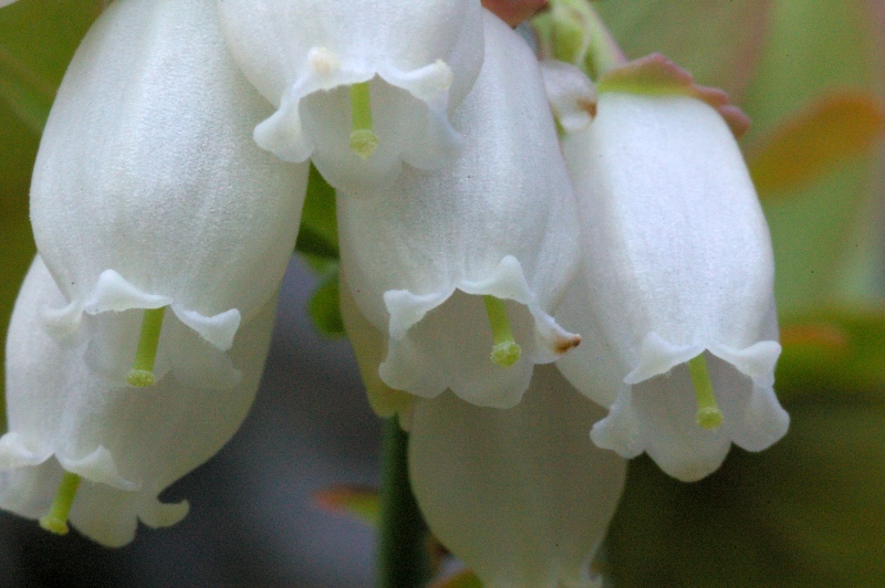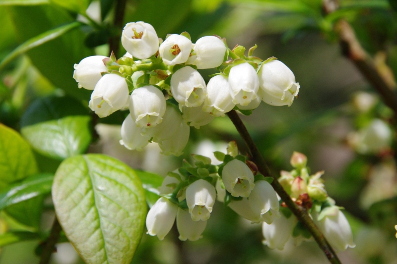 実は言わずと知れたブルーベリーですが、花はこのような壷型のかわいらしいのが咲きます。