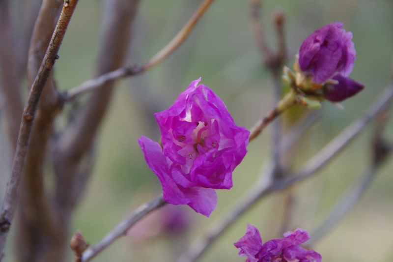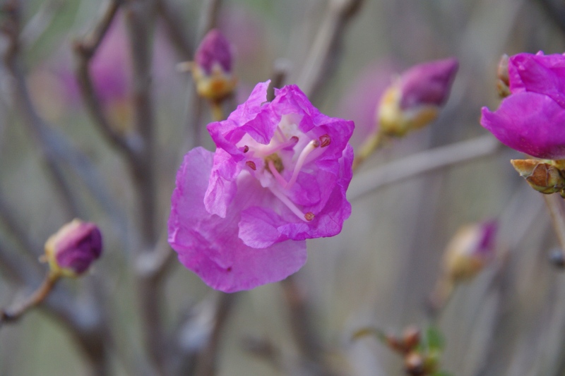 一般に見られるのは、栽培されているもので、早い時期に咲き始めるツツジとして知られています。園芸種には白花もあります。