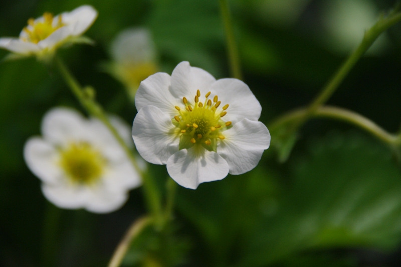 1-3は、さちのか、4-6は紅ほっぺという品種の花や実です。
