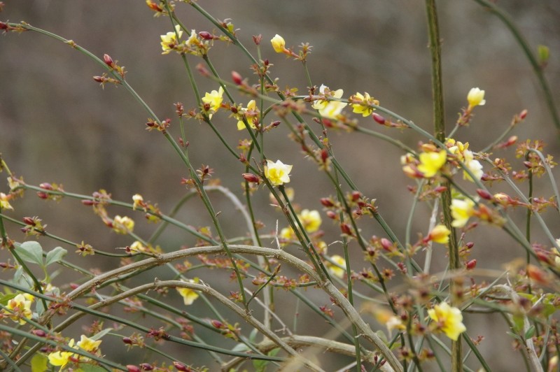 ウメと同様に中国原産の花です。葉が出る前に花が咲きます。枝は垂れ下がることが多いようです。