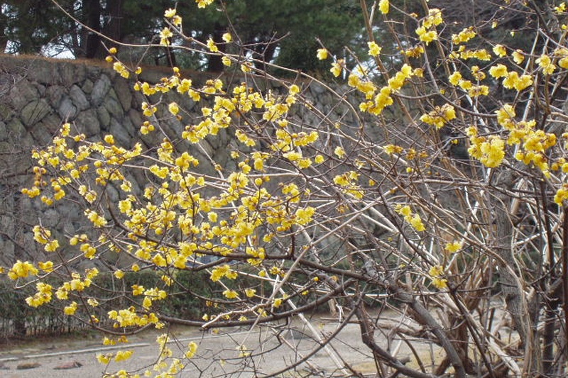 春先に咲く、黄色いウメ状の花です。でも、バラ科のウメとは科が違います。マンサクとともに、春先のトップバッターとして咲き始め、