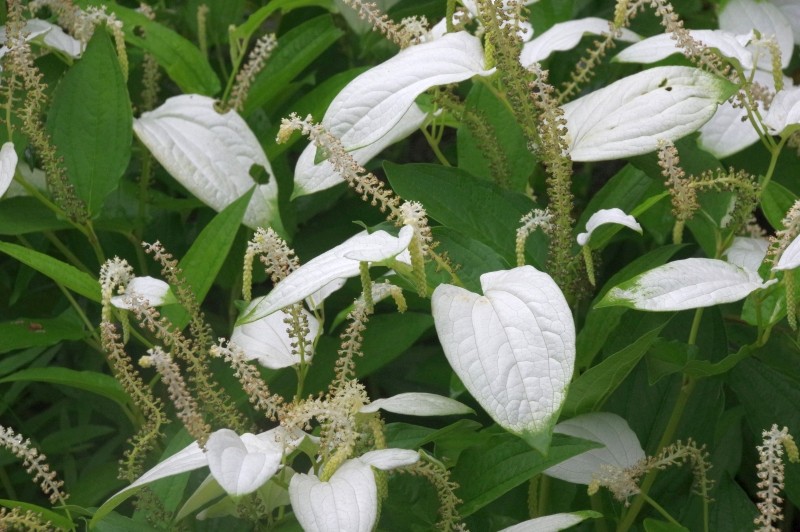 半分化粧したような葉が、独特です。半夏(はんげ)に咲くからという説もあるようです。