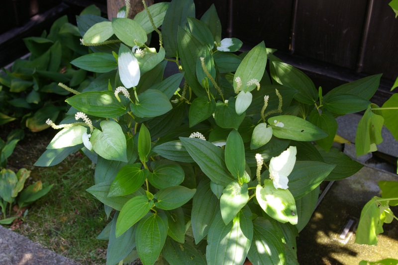 飛騨古川の古い町並みによく似合う花です。花はドクダミの芯だけ出したような花ですが、