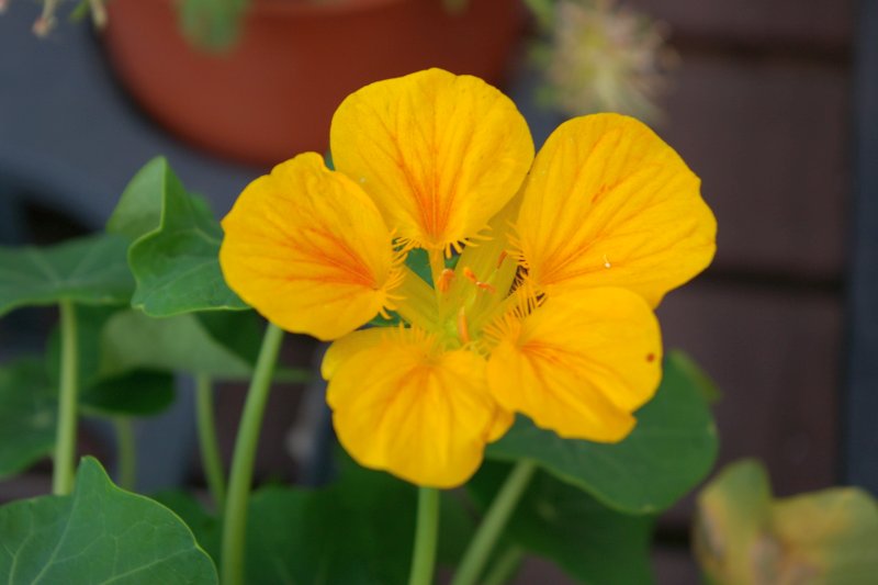 金蓮花でキンレンカです。ノウゼンハレンが和名のようですが、あまりなじみのない名前ですね。