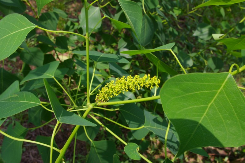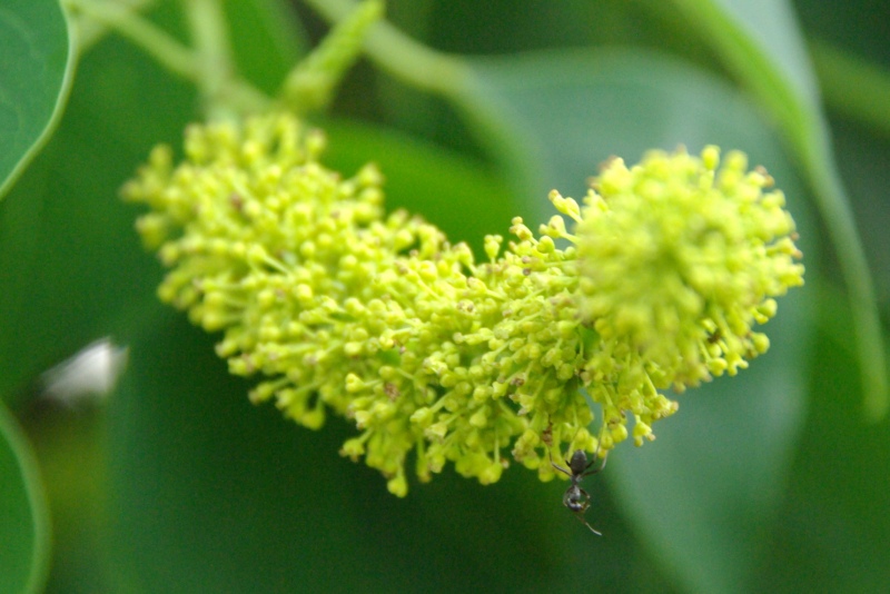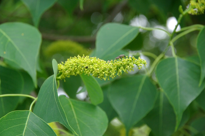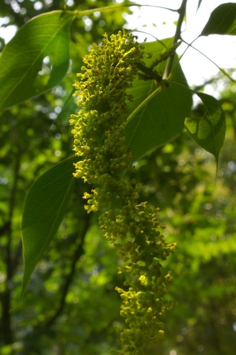 秋の紅葉がきれいな木ですが、夏には穂状の花が咲きます。秋の紅葉と実は