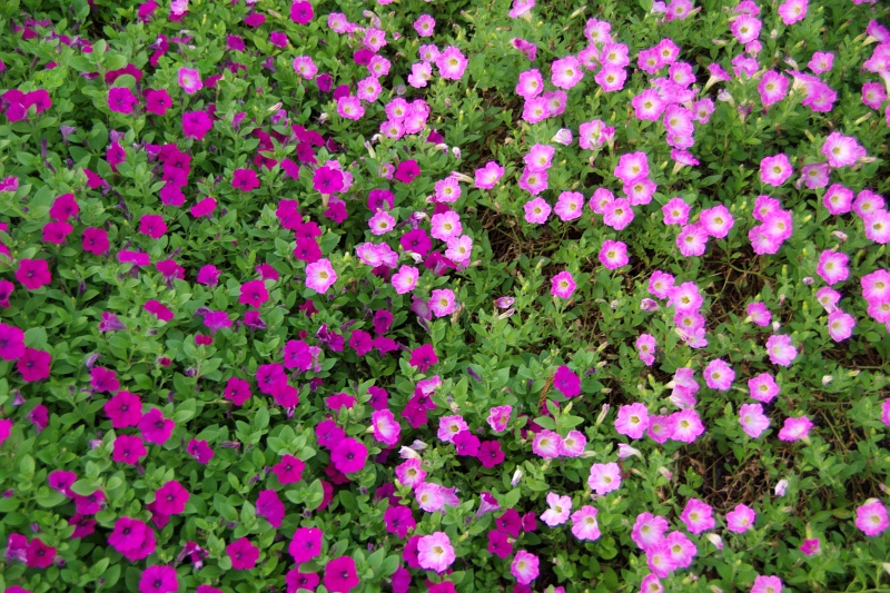 プランターでどんどん増えて咲く強い花です。春から晩秋まで咲き続けます。色は薄いピンクから濃い紫まで。