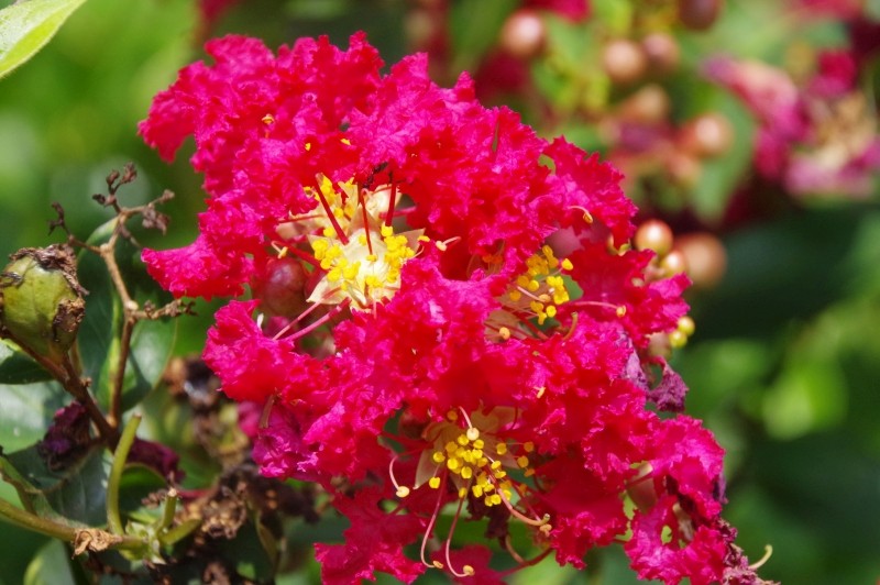 夏の暑い盛りの花、それがサルスベリです。百日紅とも書きますが、これは「ヒャクジツコウ」とも
