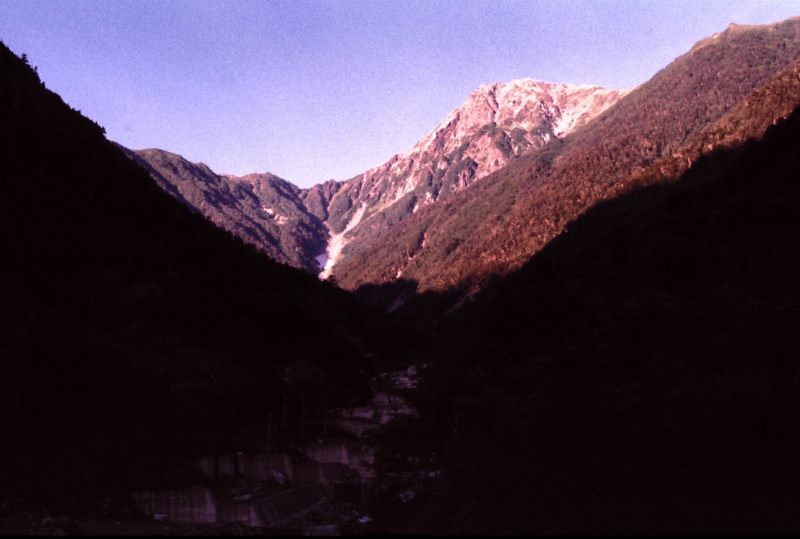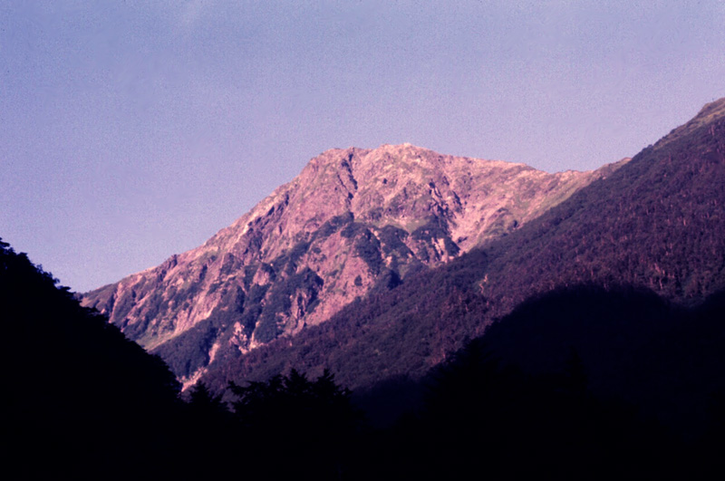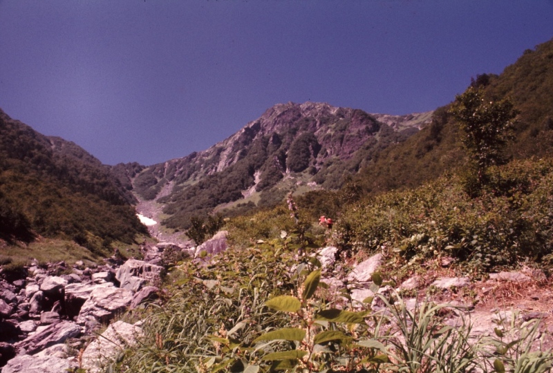 ここは甲府からバスの来る広河原。大樺沢の先の北岳はあっけにとられるほど高い、という印象でした。