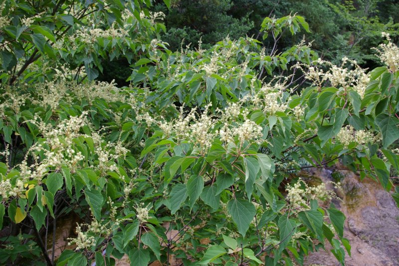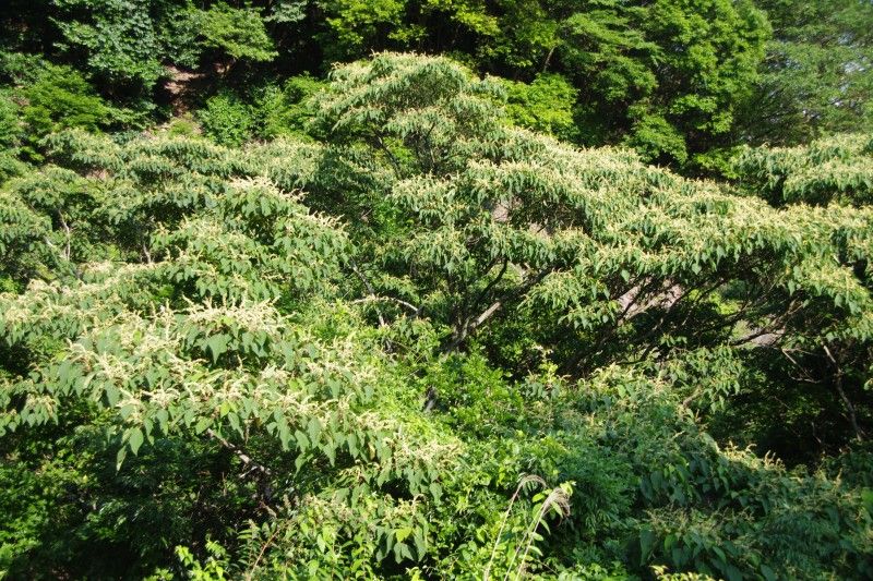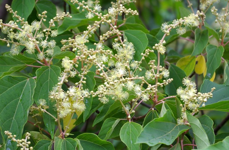 新芽が赤いので、「アカメ」と呼ばれています。雌雄別株で、写真1-3,6-8は雄株に咲く雄花。4-5は、雌株の雌花が成長して果実となりつつある時点です。