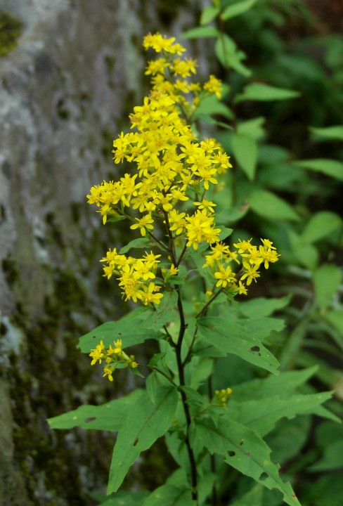 ゴマナの葉と似ています。高山に咲くミヤマアキノキリンソウと違い、花序が縦長につくのが特徴です。