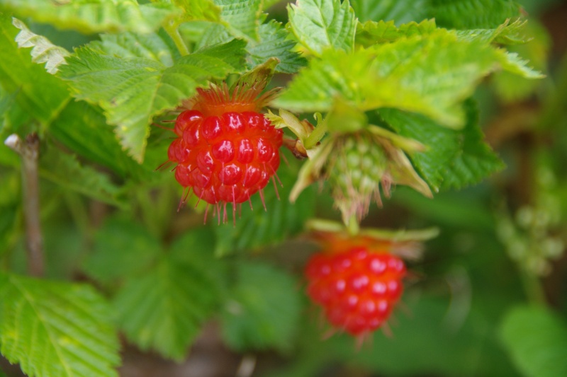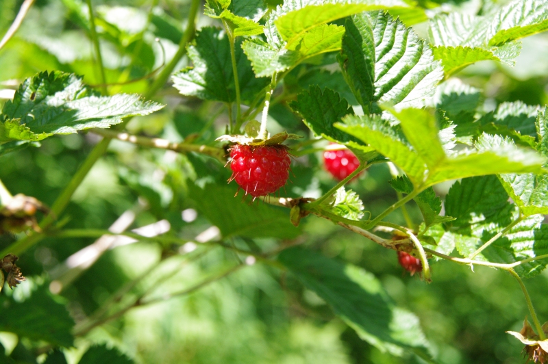 亜高山〜高山性のキイチゴで、雪の多い日本海側の山に自生します。熟したのはなかなか甘くておいしいですが、少し早いと渋いです。