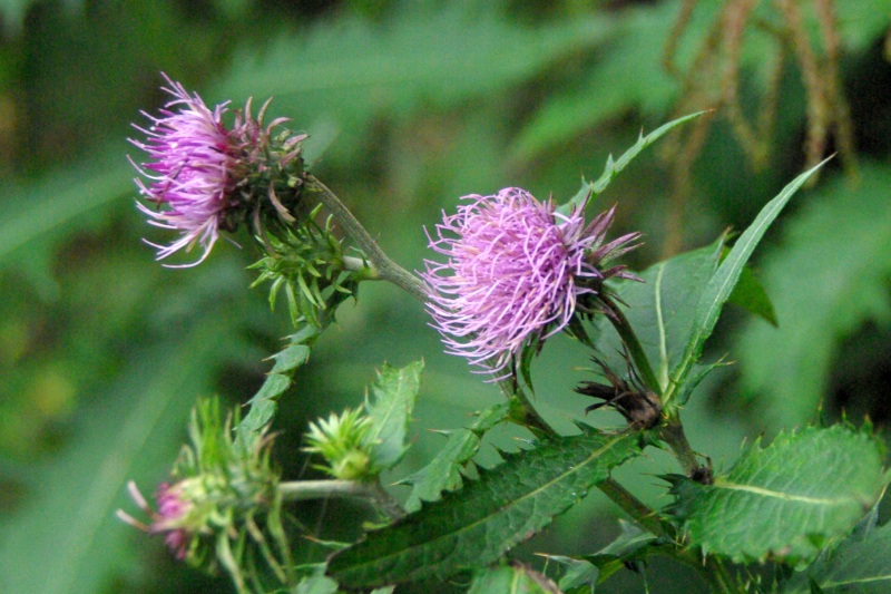 岩手地方の山地のアザミです。ガンジュは岩手のこと。総苞片が斜めに長く開出します。