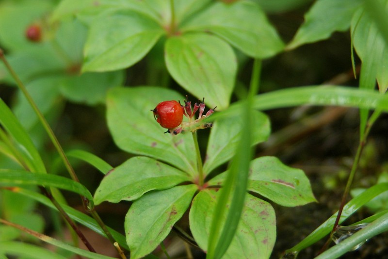 ゴゼンタチバナ(花・実) (ミズキ科ゴゼンタチバナ属)