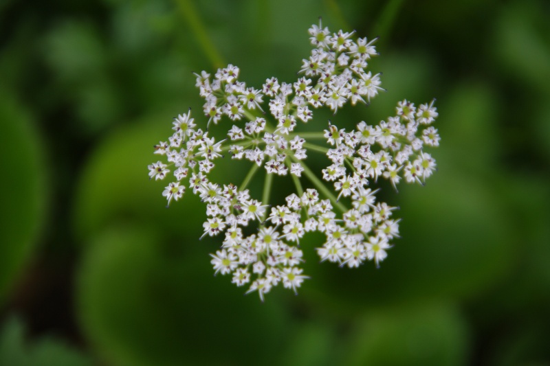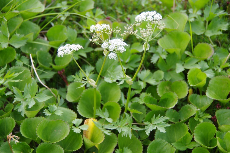 花びらの先が少し凹んでいます。葉は、ミツバ状で、類似のシラネニンジンのように