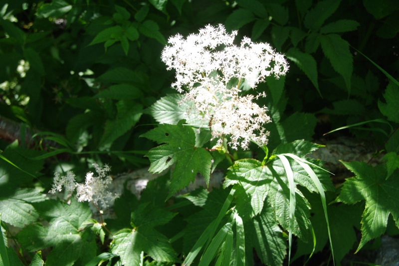 シモツケソウの仲間の多年草で、高さは1.5-2.0mになります。大きな葉は15-25cmになり、掌状に5裂する奇数羽状複葉で、