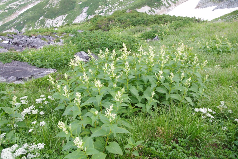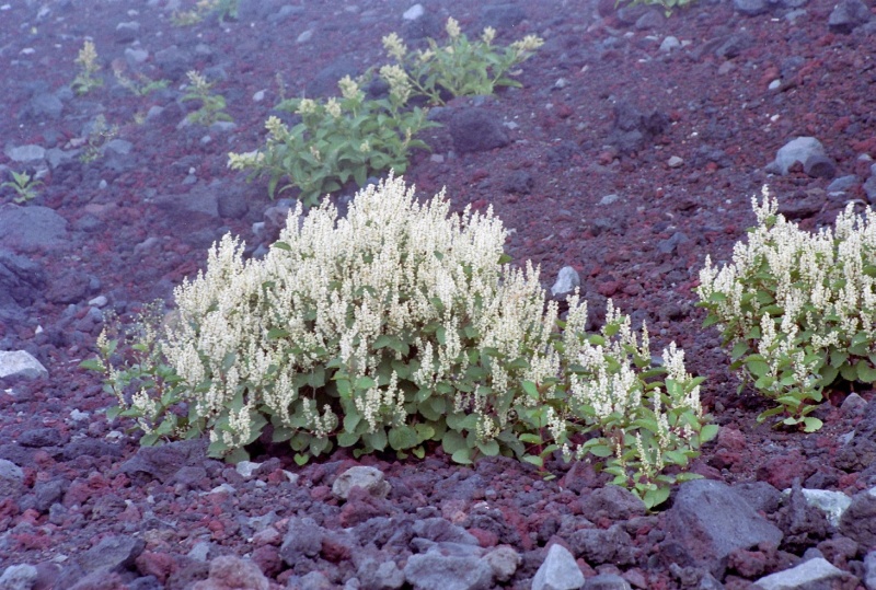富士山の砂礫の中などでたくましく咲く花です。雌雄別株。2〜4、7はピンクの雌花で、メイゲツソウと呼ばれます。